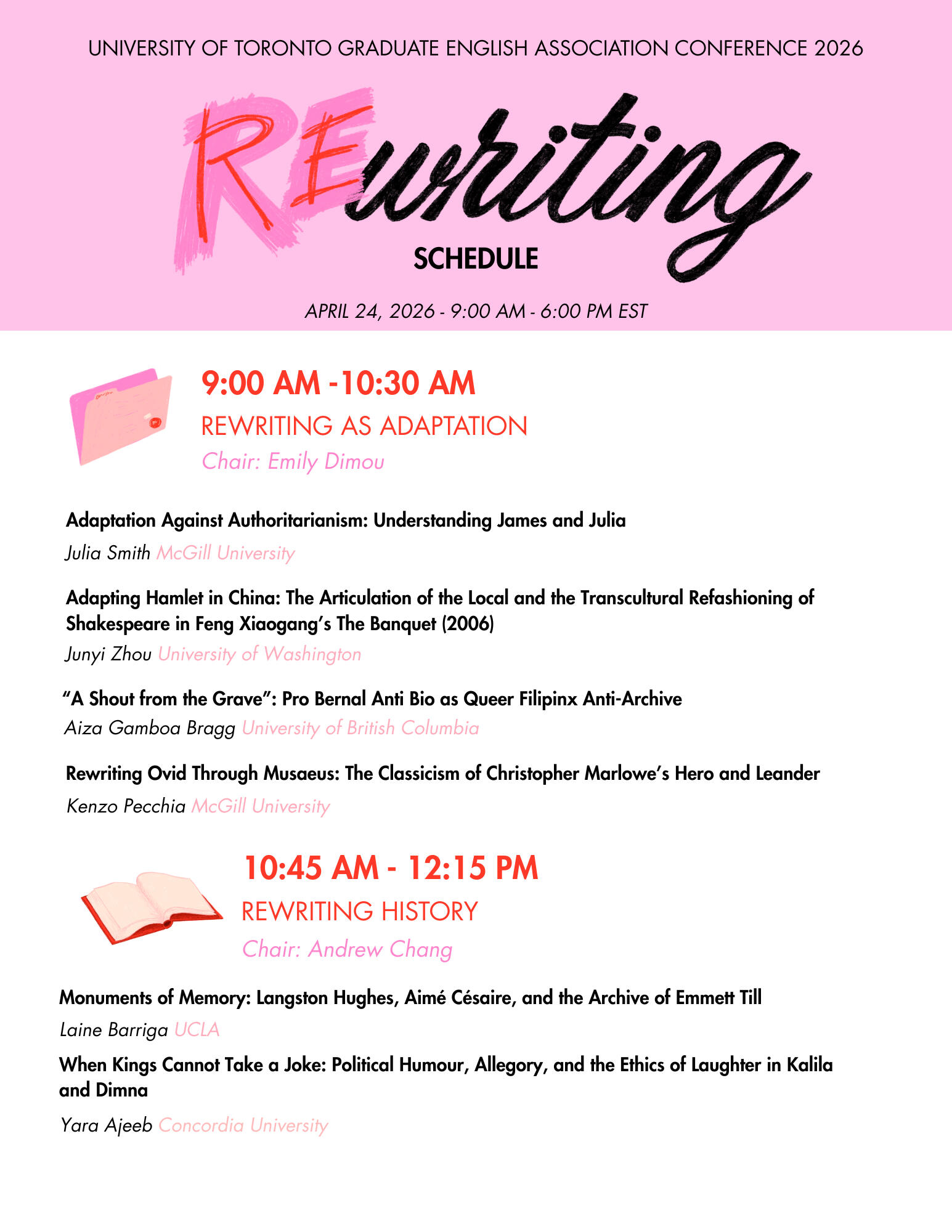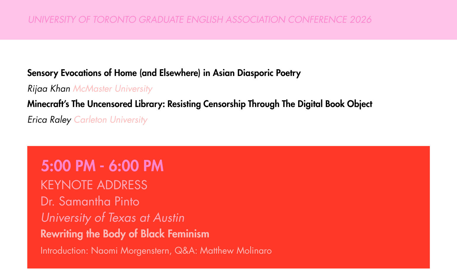 UNIVERSITY OF TORONTO GRADUATE ENGLISH ASSOCIATION CONFERENCE 2026